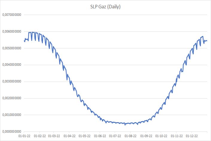 La majorité du gaz étant consommée en hiver pour un utilisateur standard, votre fournisseur va prendre votre consommation totale de celle-ci et la répartir au moyen du profil de consommation standard sur l'année calculée, heure par heure, voir 15 minutes par 15 minutes et appliquer pour chaque période le prix selon votre contrat..